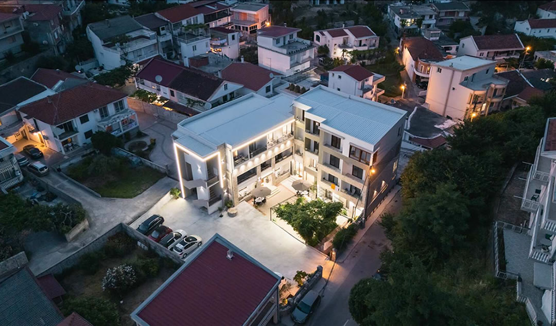 Naš hotel je izgradjen 2022 godine, i nalazi se u mirnom djelu grada Ulcinja, blizu Staroga grada, plaže, šetališta, raznih restorana i barova. Hotel ima svoj parking za vaš automobil ili motor. U sastavu hotela se osim 26 soba i moderno dizajniran restoran gdje osim ukusnog doručka imate na ponudu domaća tradicionalna jela i raznih morskih specialiteta